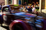 Refuelled, we returned to the fray. The whole place was buzzing with excitement as it was a beautiful day and the drivers were looking forward to 6 pm and the start of the race. After a while some of the cars started off and moved from their parking space so it seemed like a good time to follow them and find out where they assembled. We carried on in their direction through the town until we came to what was obviously the starting point of the race. A raised platform for the cars to be flagged off from and a few temporary grandstands gave it away. But still the cars travelled on and gathered on a road some way past the start. We were never sure how they arrive at their starting order as it seemed quite random. As we walked though these cars it was like being in the paddock, you were right in among them, and could see some of them still tinkering with their engines. The serious amongst them had an impressive array of technology in the vehicles which I think helped them get their timing right, as it is not a race but a time trial and so just as important not to be too early as too late. Some took their attire very seriously. Driving overalls, gloves, flying helmets, you name it, while others just jumped in their cars and went for the fun of it.