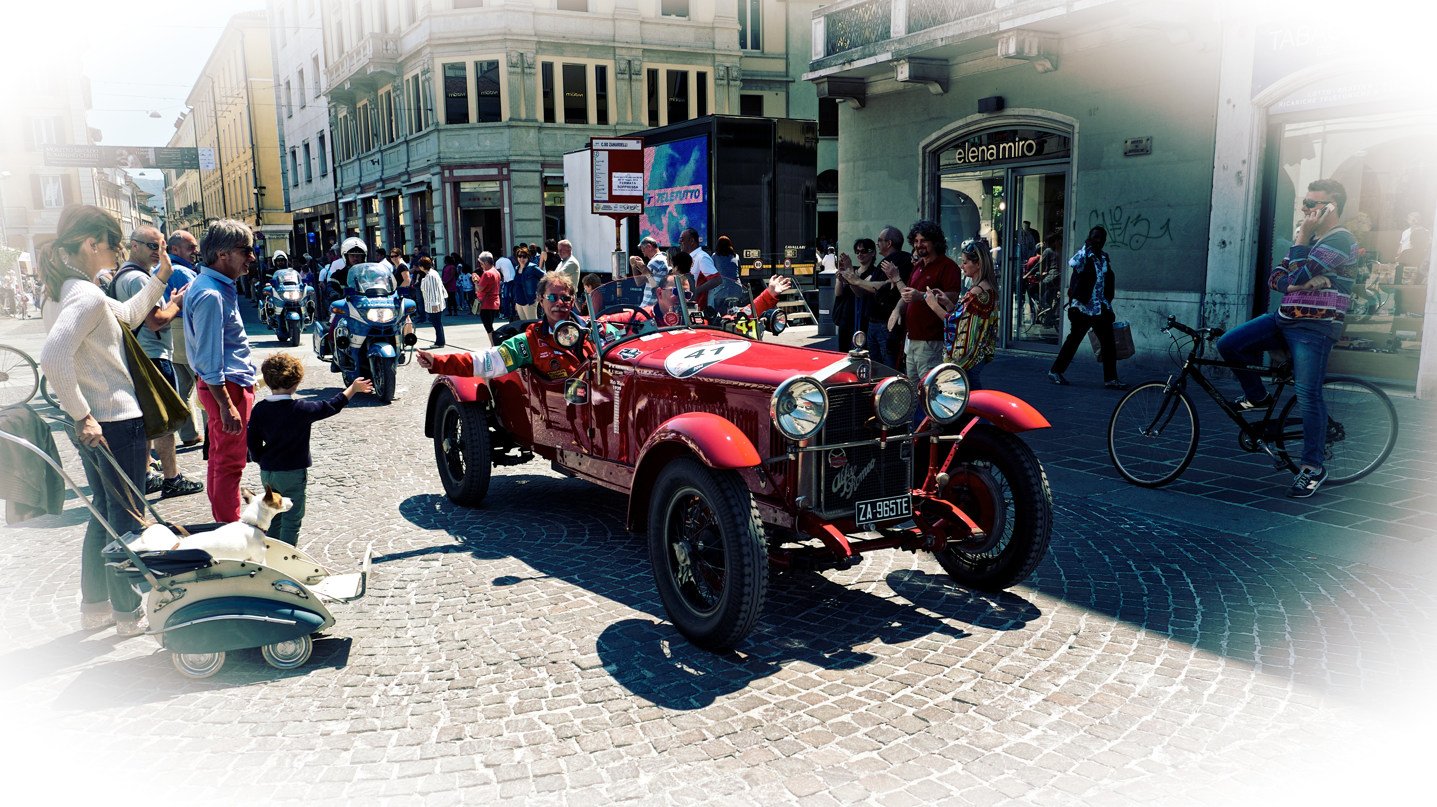 May 2014 saw us undertake a rather special road trip in our 2008 Opel GT. Our trip consisted of 5 nights in the South of France at Port Cogolin, 4 nights in Brescia, 3 nights in Venice and 4 nights in the Dolomites in the South Tyrol region. On this trip we were watching the Monaco Grand Prix Historique and the famous Mille Miglia race from Brescia to Rome and back. Finally we were meeting 9 other car enthusiasts in the Dolomites who also had Opel GTs to do some driving and exploring of some passes in the Dolomites. It proved to be a simply marvellous holiday and you can read the full holiday diary on our sister site PhotoBeast here. Here though are some photographs and recollection from our time in Brescia watching The Mille Miglia. This set of photographs are some from our first day there, when the race got underway.