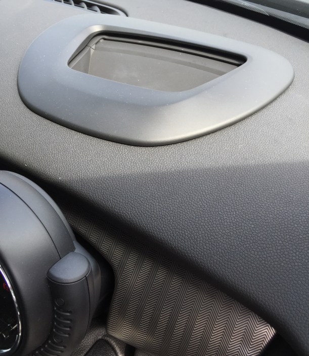 The steering wheel felt good in the hand and looked very professional, it suited the whole car interior which looks premium and polished. Then there is the auto box. Well for me it was awesome. I loved it and would definitely have it in this version. First, the car is quicker as an auto than a manual. Secondly, autos are dull a sports car should be a stick? Well… Not really, you see with a stick you get to drive the car one way i.e by changing gear. With the auto however, you get options. Stick it into drive and let the car do the work. Fun and you tend not to look an arse. Alternatively put into a manual sport mode and change up and down yourself using the paddle shifters on the steering wheel. What a blooming hoot. Trust me it’s great fun. Thirdly the car has the fuel saving stop/start function. My wife, Mrs P still hates this on our Paceman and JCW but matched to this auto box, it is just so smooth and simple. You slow down by braking and come to a stop. The engine switches off, the lights go green you move your foot over to the accelerator and you just go. So so smooth. Spot the bit of red below seeming to stick out of the side of the inner part of the steering wheel. Well actually it is in the middle of the centre console flick switches. It is a shiny red start button. Yep a shiny red start button. Mum… It’s got a shiny red start button can I have one Mum can I?