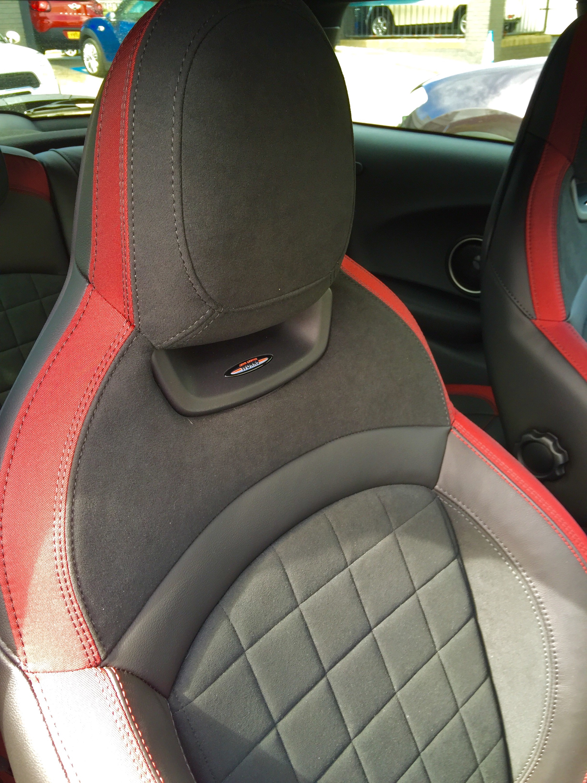 The next thing I noticed were the seats. These are I believe the standard works seat, a mixture of fabric, alcantara and leather. They look fabulous and are instantly vey comfortable and very grippy. Yep sold on the seats.