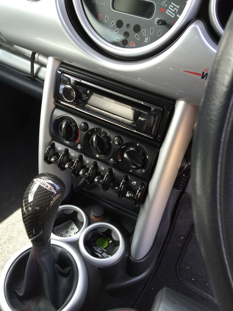 The installation is complete now. We failed in one are which was connecting the steering wheel controls. This is because I ordered the wrong lead twice and lost the will to live on that one. Also there is not much room behind the stereo for the extra box it uses, so we called it a day on that one. In truth the fascia is much more user friendly on this one. 18 DAB presets in in a bank of 6 push button presets and a quick switch to change between banks 1,2 and three are easy to do even in a bouncing GP.
