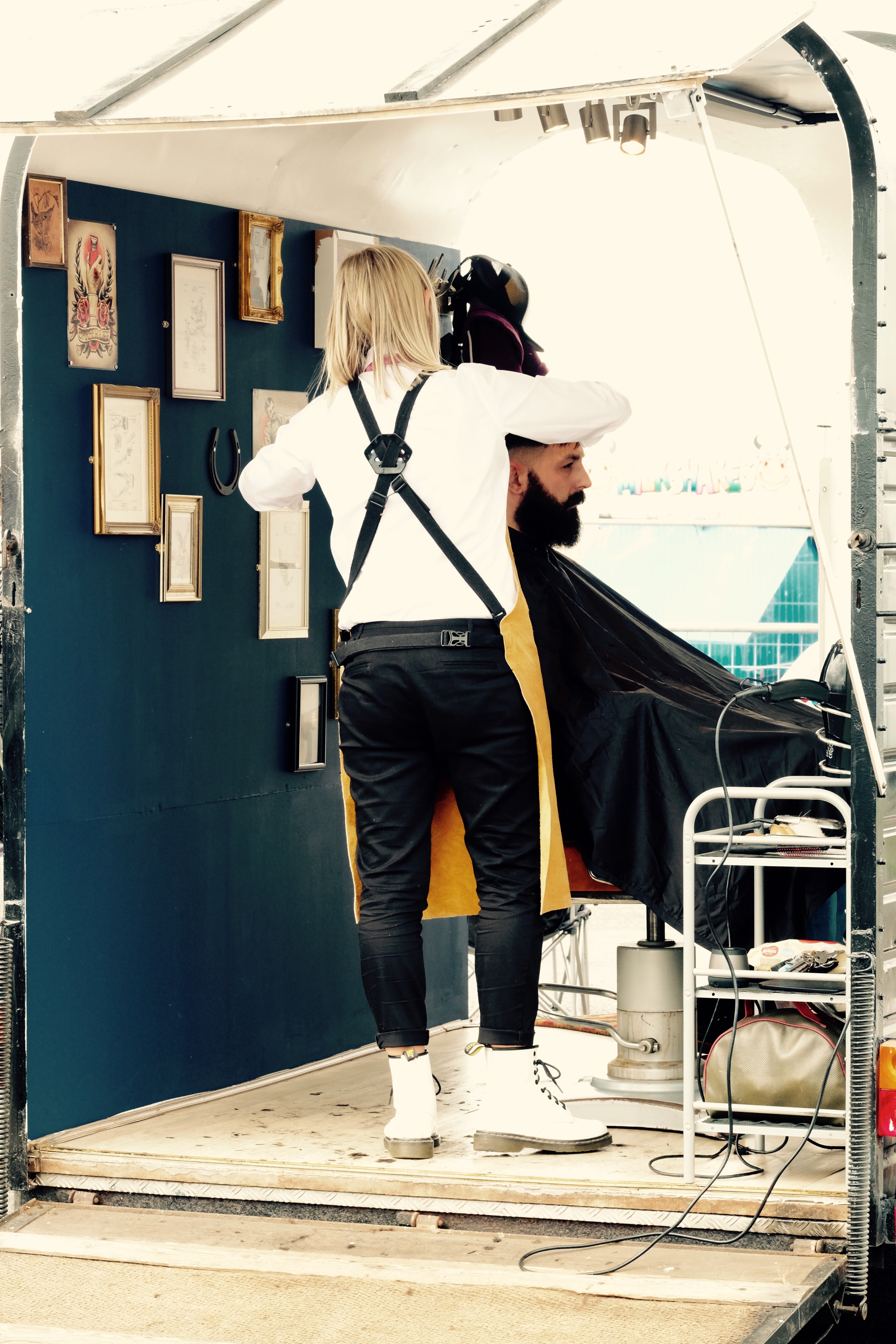 After a bite to each we looked st the stalls. I nearly bought this Scalextric but resisted and we found this horse box converted to a mobile barber shop to be a neat idea!